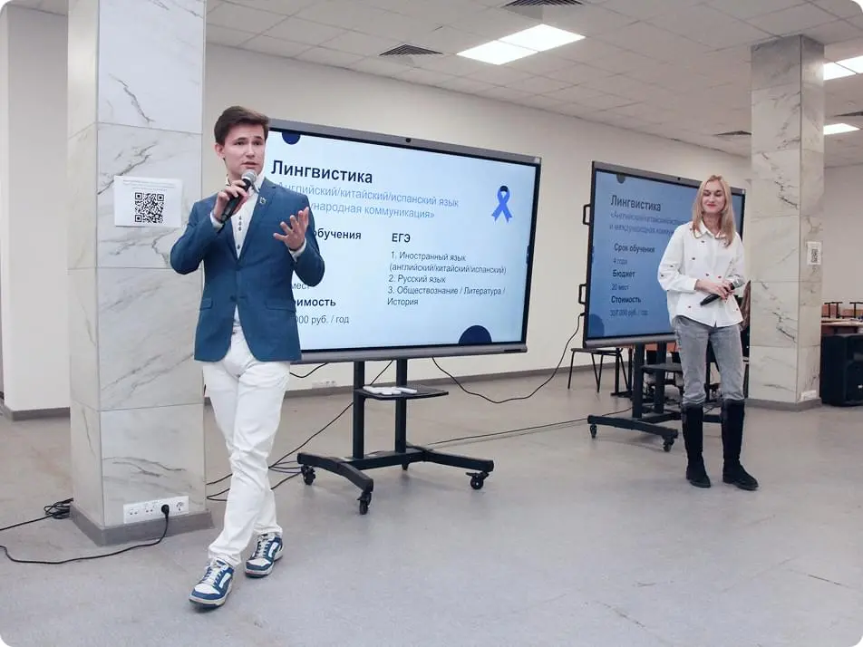 Меня зовут Виктория. В профессию и именно этот университет пришла не случайно. С 1 класса изучаю иностранные языки, а сейчас благодаря университету, нахожусь на стажировке в Китае. Также веду свой образовательный канал. Рада ответить на вопросы.